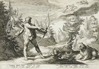 Drugo, Arkadijanci tvrde da su bili stvoreni pre Stvaranja Meseca, i oduvek su mislili da je Veliki Medved Kalista koju je Zevs pretvorio u medveda. Istina je, Homer ne spominje direktno mit o Kalisti, ali njegova izjava da se Medved "ne kupa u okeanskim kupalištima", se može odnositi na Herinu molbu Oceanusu i Tethysu da je “medvedu” zabranjeno ono što drugim zvezdama nije. Jasno je, međutim, da on ima malo poštovanja prema Artemidi. Na kraju krajeva, Artemida je boginja “osvojene rase”. Grci su prihvatili mit kada su usvojili Artemidu i Hesiod je savršeno upoznat sa tim prema Eratosthenu.